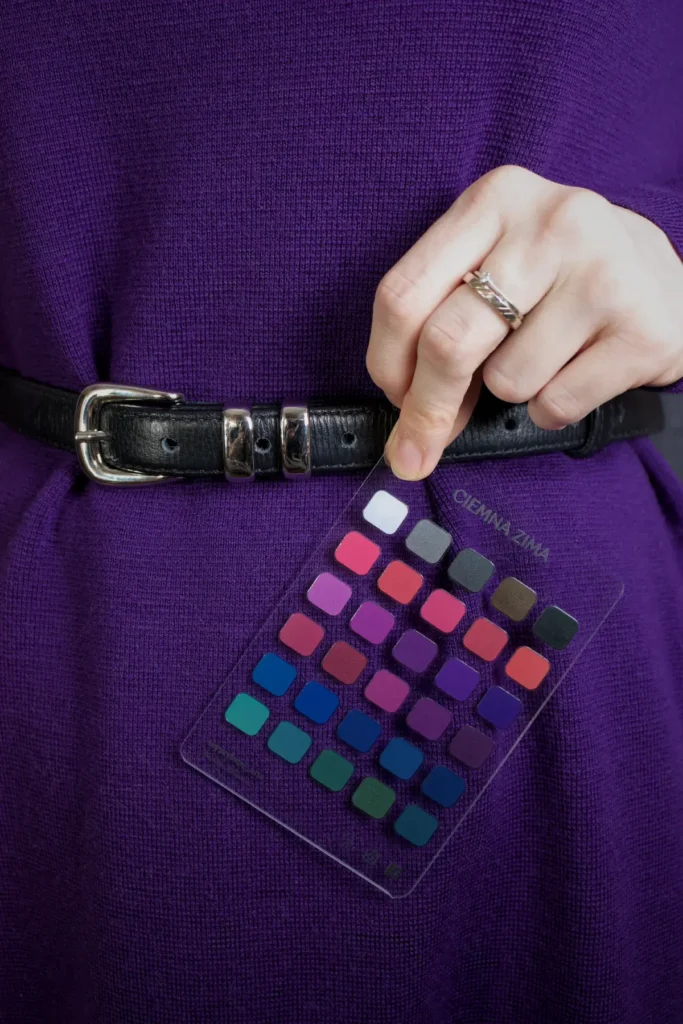 Podczas zakupów wystarczy przyłożyć wachlarz do ubrania, aby szybko sprawdzić, czy dany kolor będzie dla Ciebie odpowiedni. Nie zawsze znajdziesz identyczny odcień – i to zupełnie normalne. Jeśli kolor jest zbliżony lub znajduje się pomiędzy kolorami z wachlarza, najczęściej również będzie dla Ciebie dobrym wyborem.